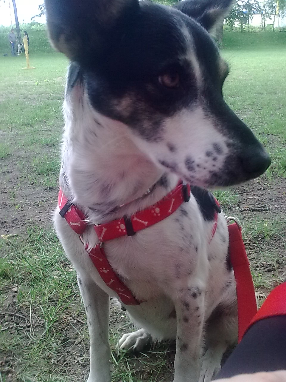 Wchodzimy, wchodzimy, a tu ją energia rozpiera. Przez pierwsze chwile tylko odchodziła od psów, ale nie dziwie się. Po cieczce, przez którą każdy chciał się do niej przystawiać miała pewnie samców dość xD. Plany: tunele i skikanie, okej. Zobaczymy. Hm, to był trzeci trening a ona nie chciała wcześniej skakać. Spróbować nie zaszkodzi. Przeskoczyła. Świetnie, za pierwszym razem - idealnie :D. Nawet gdy wracałam to sama chciała ^^. Zmęczyła się, chwila odpoczynku. Potem tunel, co szło równie dobrze :D. Znowu przerwa. No to łącznie. Hop, tunel. Była baaardzo zmęczona ale i taaak zadowolona ^^. Chciała podkradać żarło xD. A zdjęcia mam tylko takie, nie było jak innych zrobić ;d.